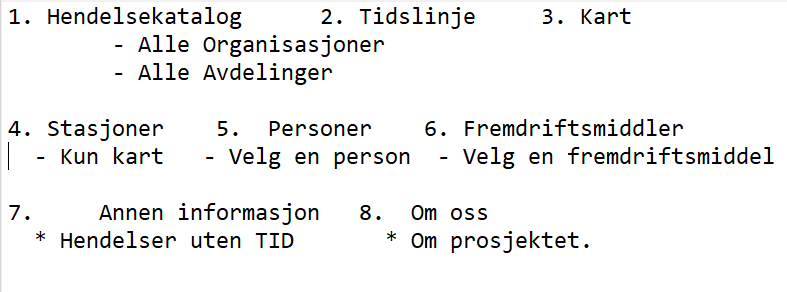 Hendelseskatalog - Tidslinje - Kart åpner disse, og viser to valgbokser hvor du kan velge i 2 nivåer.