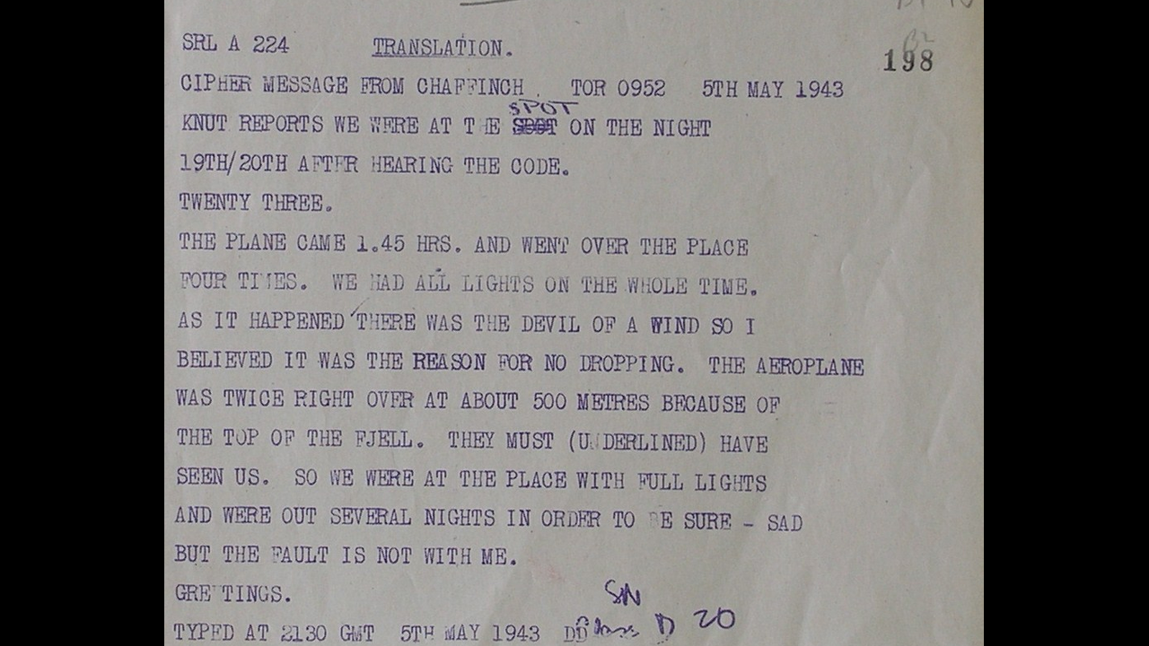 Sadly, not all drops went smoothly and without incident. A report from a Rear Gunner (Sgt Campbell) flying on operation ALGOL/CHAFFINCH 3 (to Norway) on 19 April 1943 was as follows: