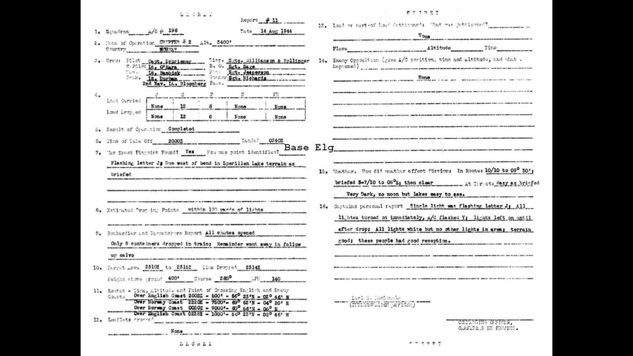 Norway 1409th AAF Base Unit Det 1 BP 11 Schriener 14/15Aug44 Crupper 2 12C, 6P 2310 - 2315