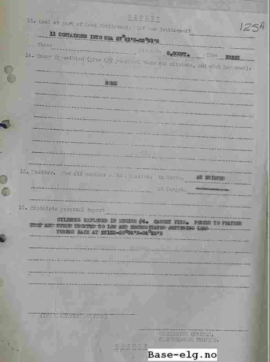 1 Oppdraget avbrutt, lasten bråsluppet kl 22.25 fra 5000 fot i posisjon 57° 41' 00" N, 03° 51' 00" 0 (det vil si over Nordsjøen).
