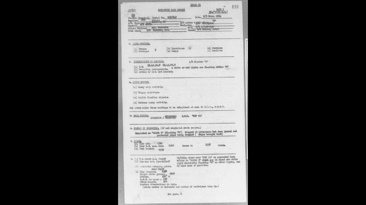 "Bit 14, According to the pilot's report, the load was dropped on alternative point, Reins 5. Chaffinch reported finding 15 containers at Nordsjoe. This was not a reception ground but Chaffinch happened to be in the area and picked up the load."