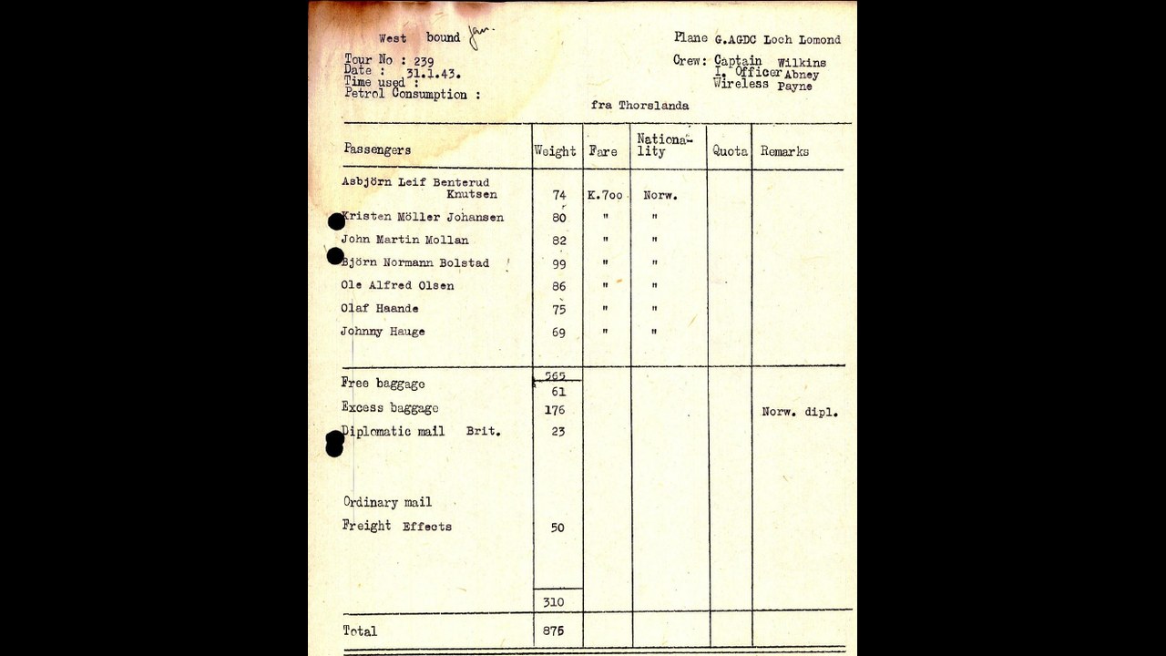 B.O.A.C Norges Luftfartsstyre, passasjerlister