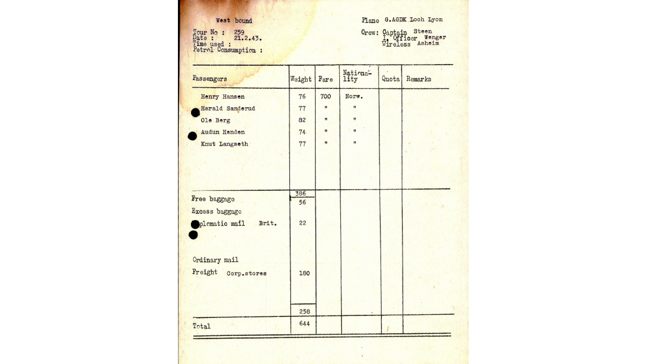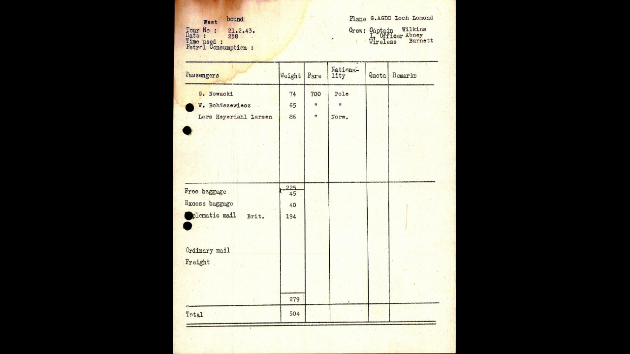 B.O.A.C. 258 21.02.1943 Capt Louis Alfred Wilkins
