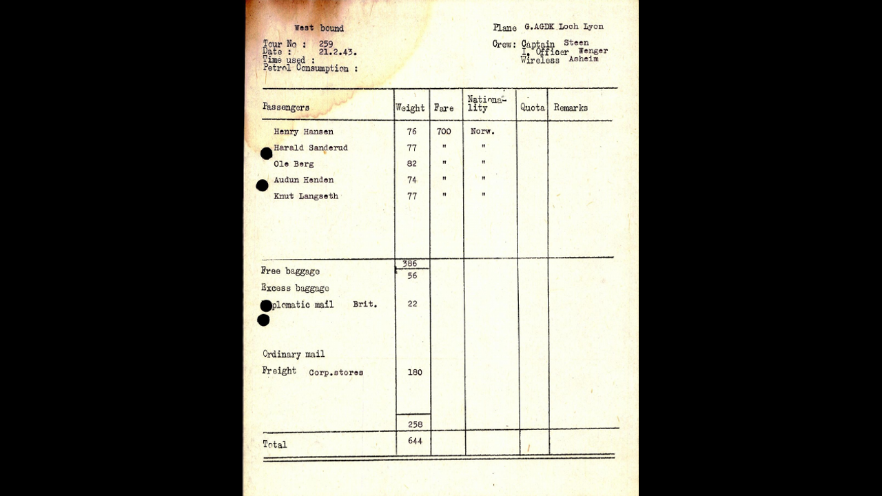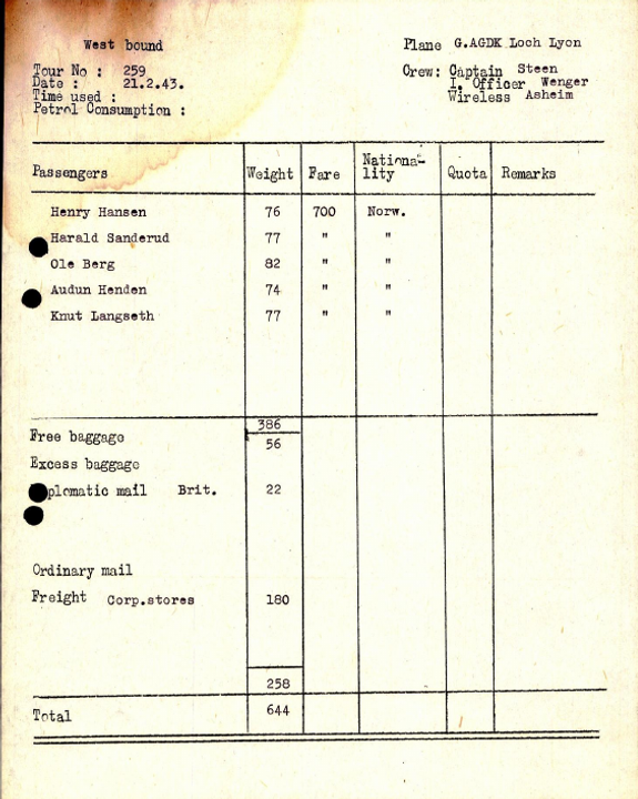 B.O.A.C. 259 21.02.1943 Capt Steen