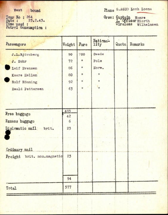 B.O.A.C. 264 23.02.1943 Capt Martin Hamre