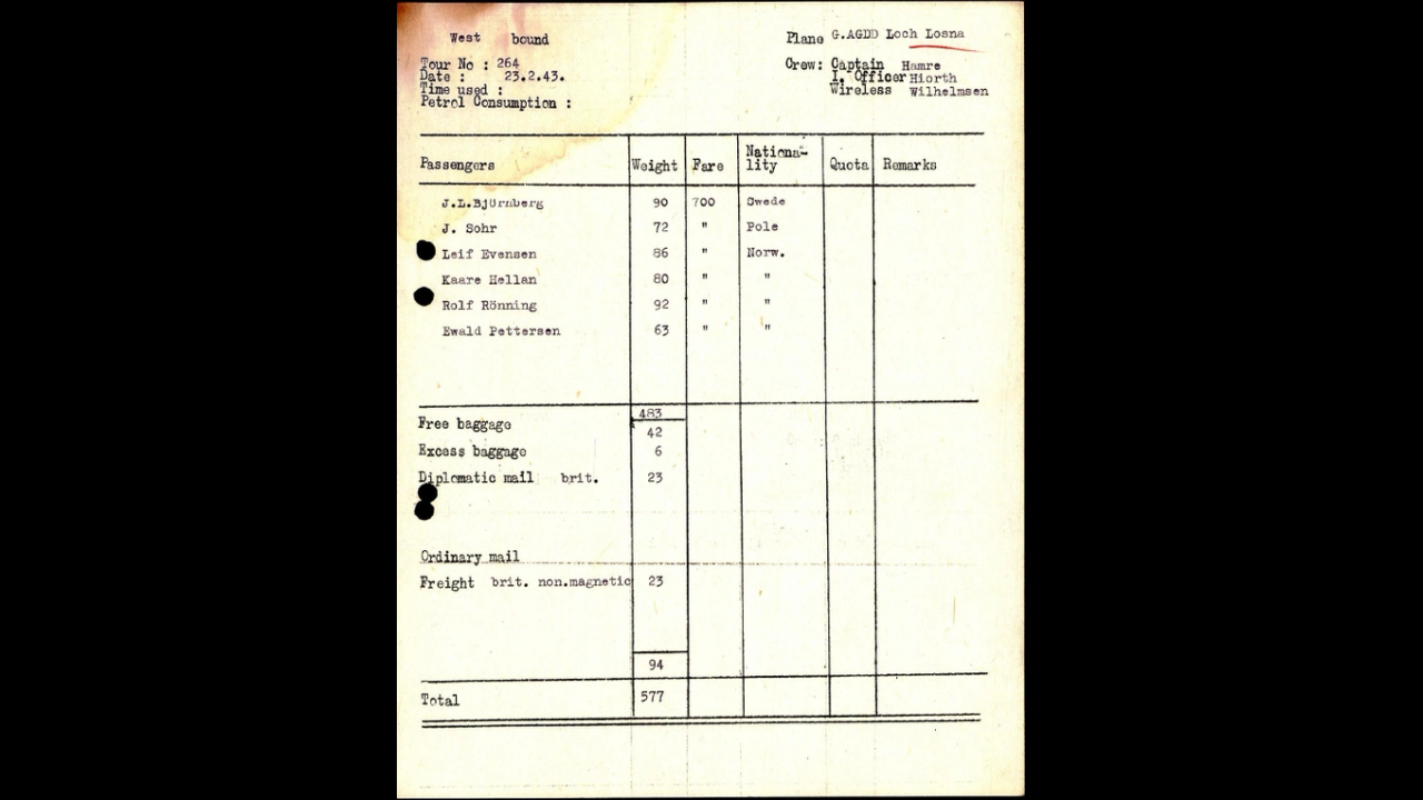 B.O.A.C Norges Luftfartsstyre, passasjerlister