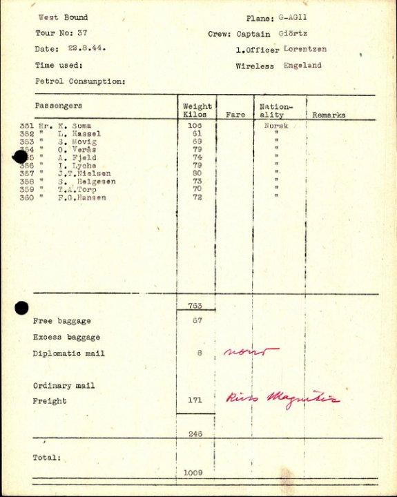 B.O.A.C. 556 22.08.1944 Capt Giørtz