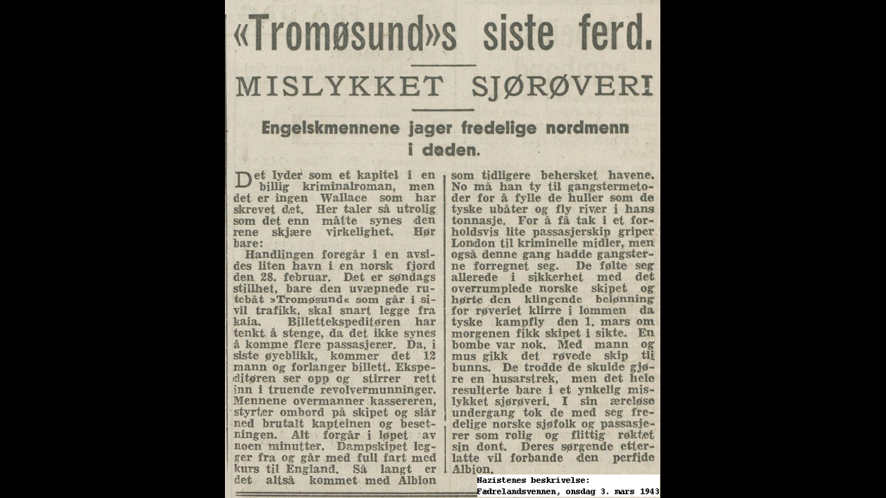 En tid senere ble den ene av de to ukjente identifisert. I jakkelommen hadde han en fint utskåret treskje, med ring om skaftet. Den var skåret på en hytte i Lyngdalen, i midten av februar. Den ukjente var styrmann og løytnant i Kompani Linge, Odd Kjell Starheim, fra Farsund.