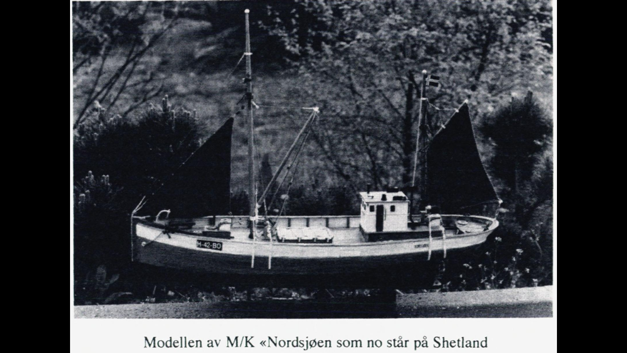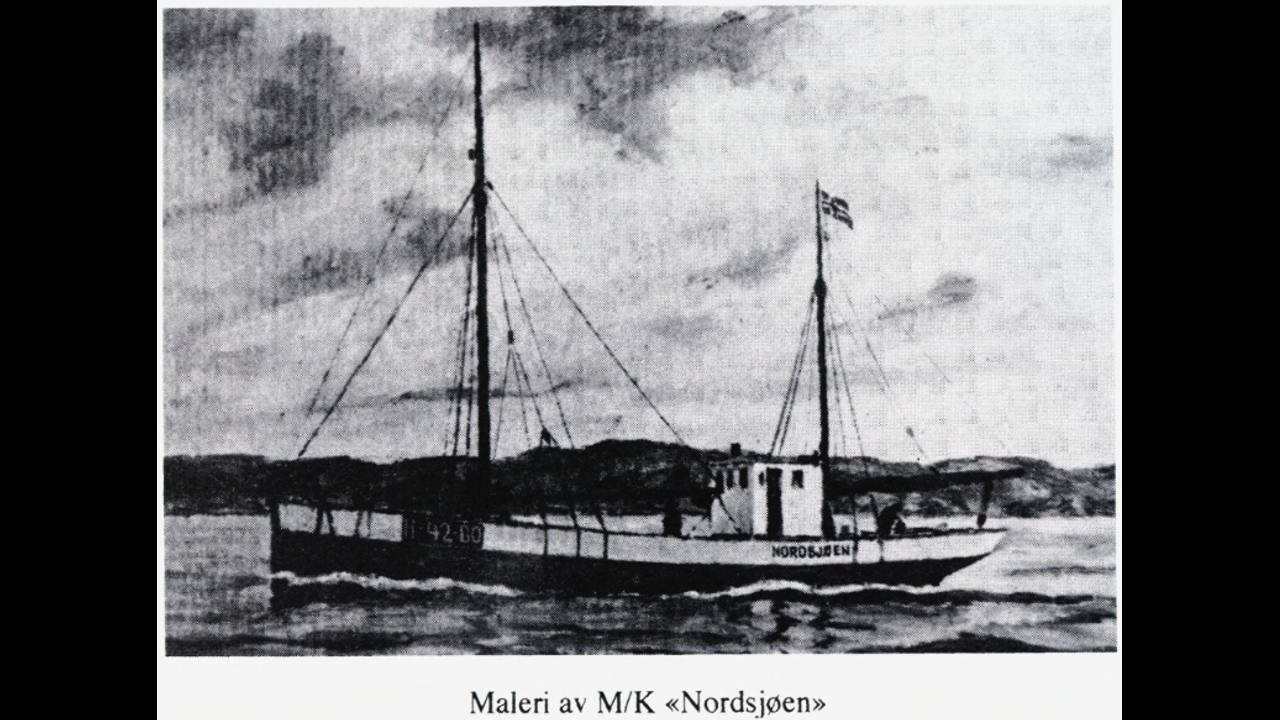....... Nipen satt i maskinrommet da det skjedde. Han horte at tre ble knekt, og-straks etter strømmet vannet inn, først ned i skutebunnen, så opp i svinghjulet. Merkelig nok gikk maskinen lenge etterpå. «Nordsjoen» hadde da snudd og slingret på veg inn. Maskinen banket like til vann fulgte med inn luftinntaket, som på semidieslene er helt nede tvers for veivrommet. Da sjøen skylte over dørken, var det gjort. Noe som var med og reddet dem, var at de hadde elektrisk lys, bilbatterier rett og slett. De hadde dekkslys hele vegen inn, enda batteriene stod under vann i en benk i maskinrommet. Mennene satte i gang med å øse, for å pumpe på vanlig vis forslo ikke. De stod på dekk med poser og øste opp gjennom luka. Etter at «Nordsjoen» nå hadde tørnet og var på inntur, heiste de alt de hadde av seil. Både fokka og mesanen flakset snart vekk med vinden, bare tauverket hang igjen og slang. Men på stormasta hadde de en god trehukk, og den greidde seg. De maktet å holde skuta flytende til de nådde inn til Tustna. Der gikk de i lettbåten og rodde opp til et skjær. De drog båten på land, hvelvet den og krop under. De var gjennomvåte, og over kjølen var det nordvest og snøkave.....