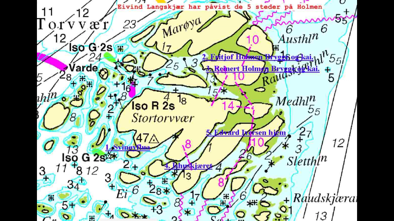 I Træna i krig forteller Olav Kjell Sørhaug om turen. De går inn til Selvær, og Magnus Selvær anviser de plass i Dørvær, i skjul mellom øyene i Geitholmsundet. Aksel Dørvær kom ombord, han var en av kontaktpersonene. De skulle så planlegge føringen inn til Visten. Fritjof Holmen skulle gå med MK Havheim inn til Visten.
