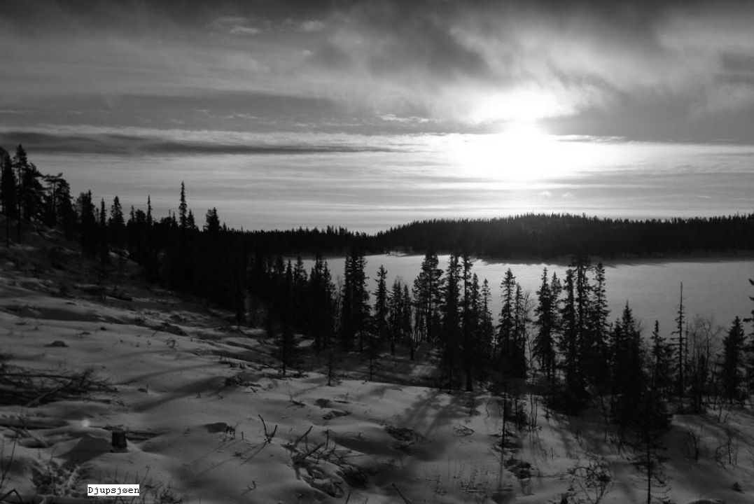Nå var det mest utfor sørover til Djupsjøen. Bamse travet i veg som en helt med sleden dinglende etter, og vi kom fram til mellomfrokost. Vi ble på Djupsjøen i to dager og hilste på de karene Holst nå hadde inne der til et 14 dagers kurs.