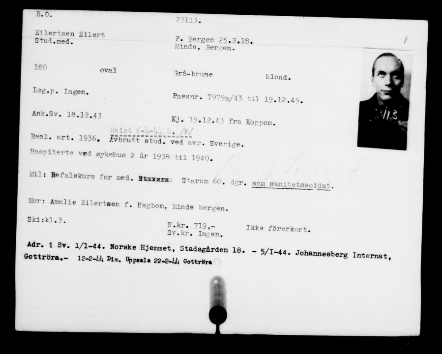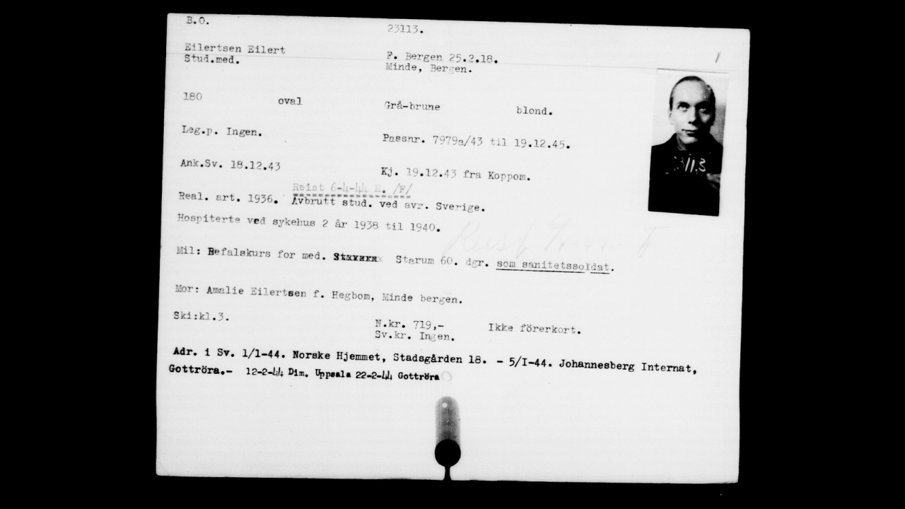Student medisin. Hadde hospitert 2 år på sykehus før krigen.