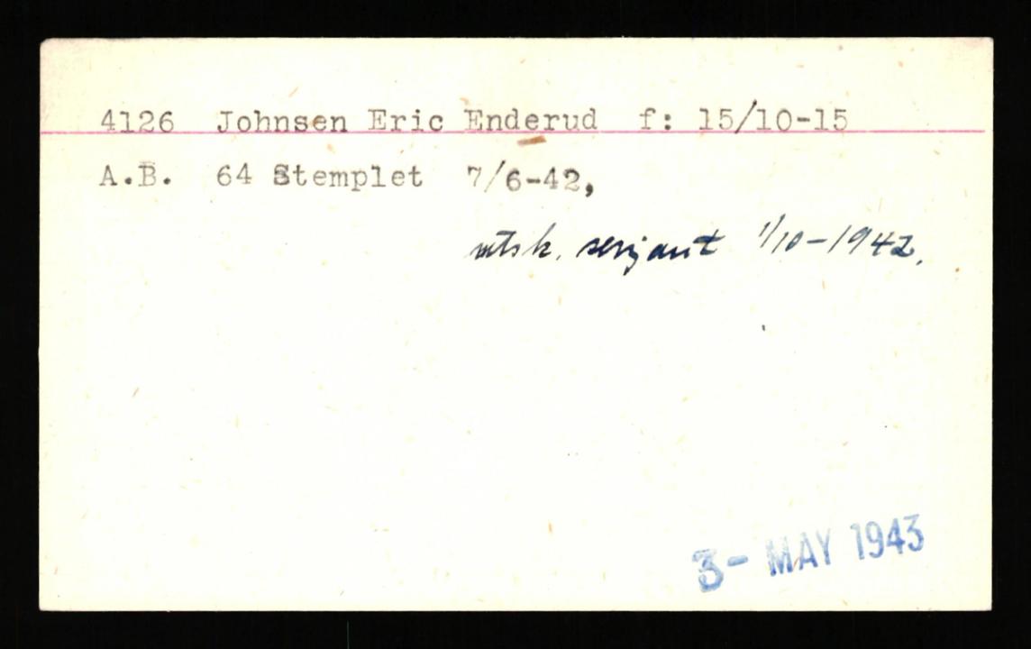 Eric Finn Bjerregaard Endrerud Sersjant ("F-9", "E.E.Johnsen","Erik Dalen",) - født i 1915