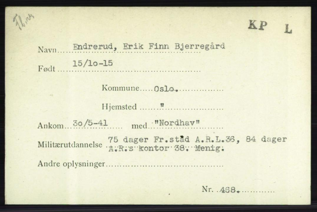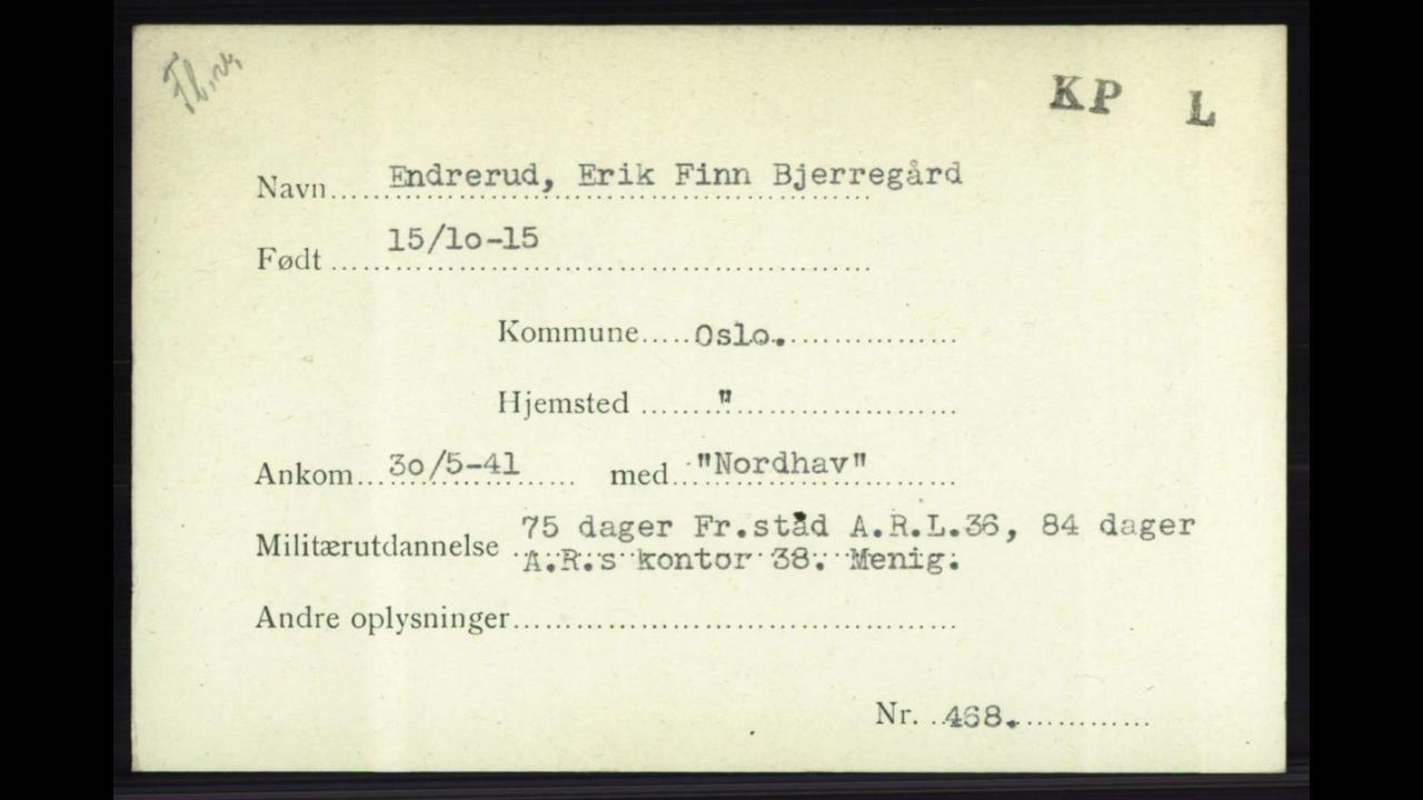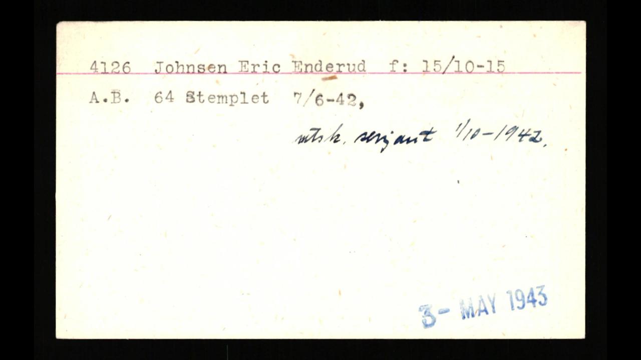 NB 2 HS9 filer: Eric Endrerud har faktisk 2 H9 filer, en fra 1941 - HS9-481-3 den andre fra 1942, HS9-801-7 da han er tilbake fra FO- HOK tjeneste.