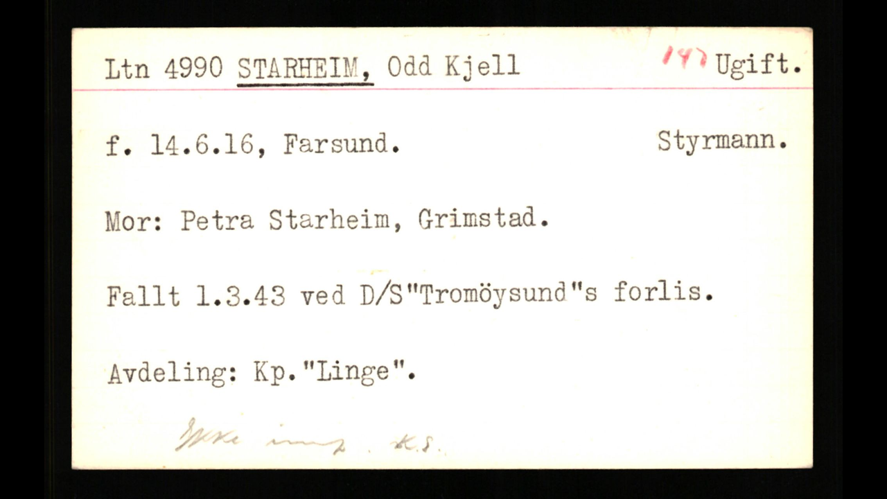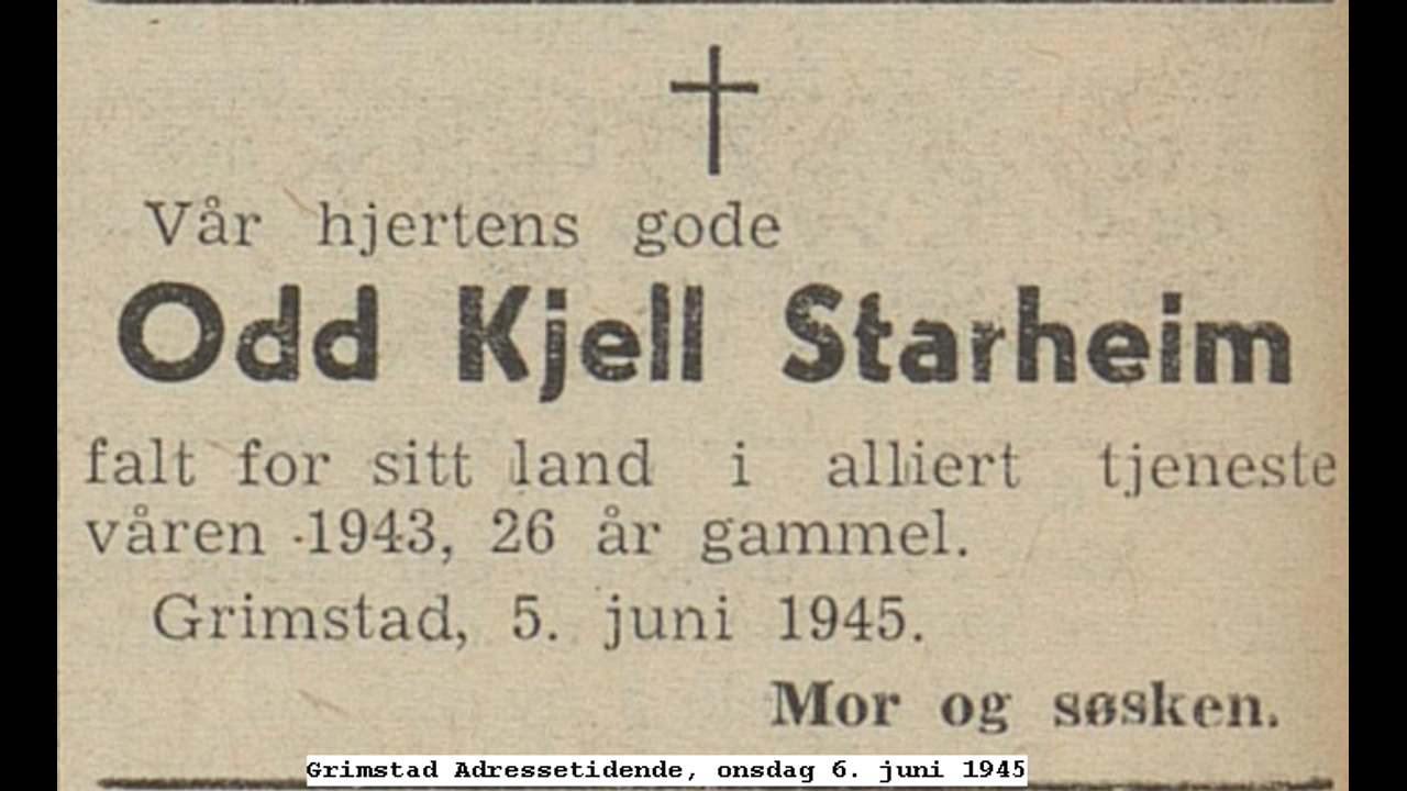 Odd Kjeld Starheim ✝ (Ola Svensen (Swensen) og senere Lt Ola Stenvold.) - født i 1916
