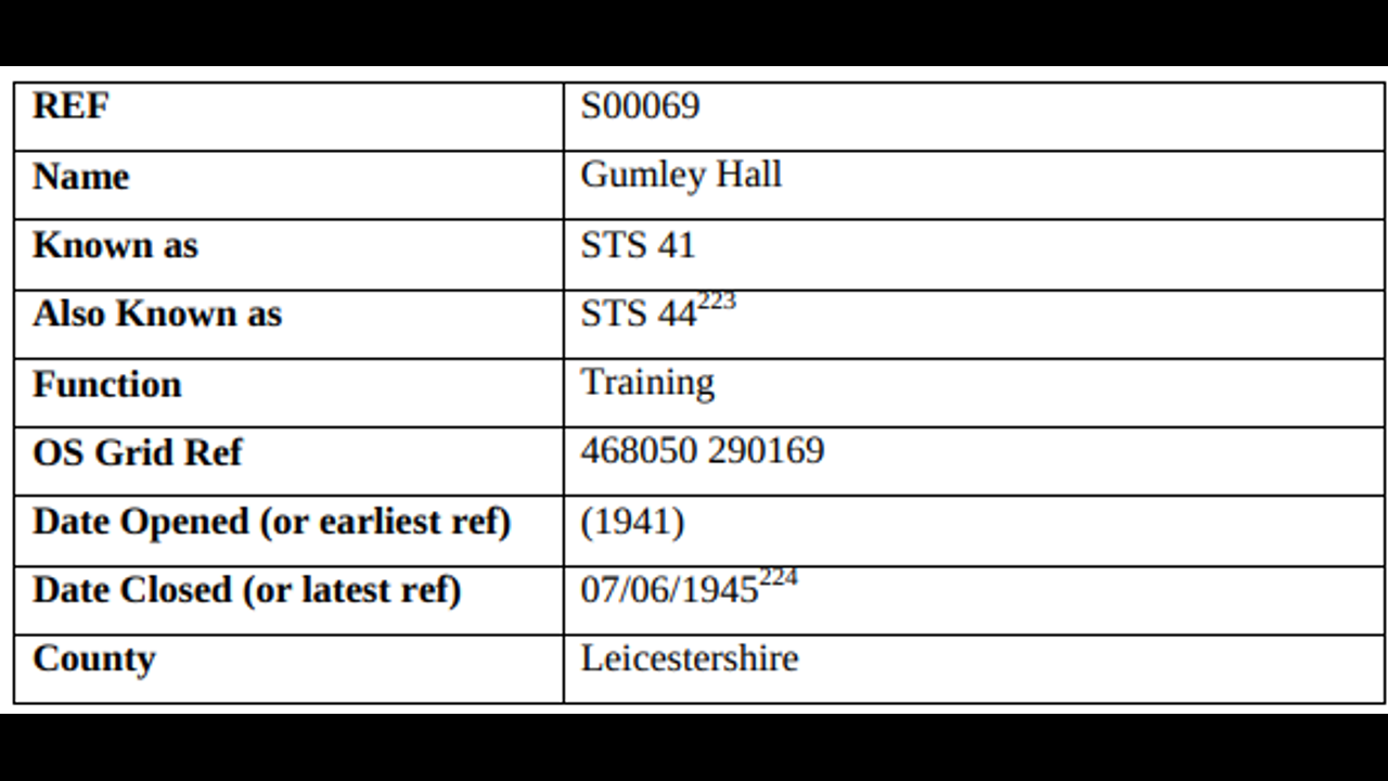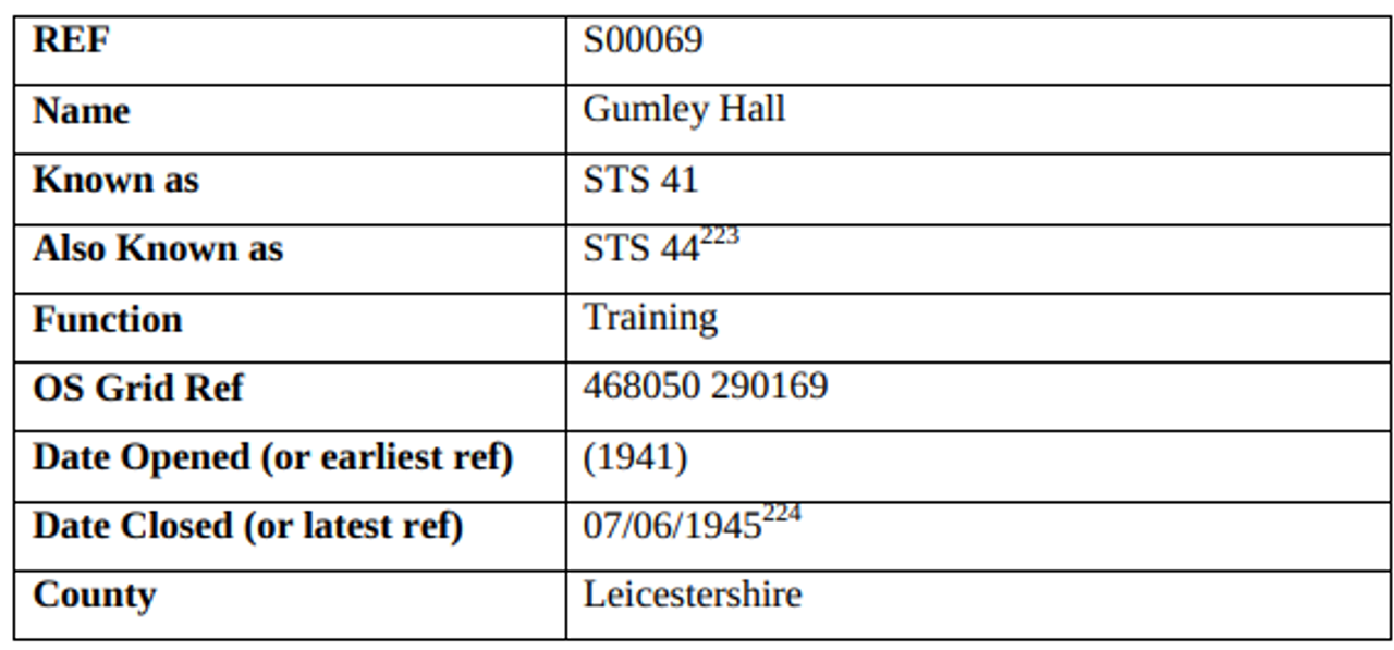 "Part of SOE’s Holding School complex. As of 1 January 1943, it was commanded by Commandant Major THH Grayson. 225"