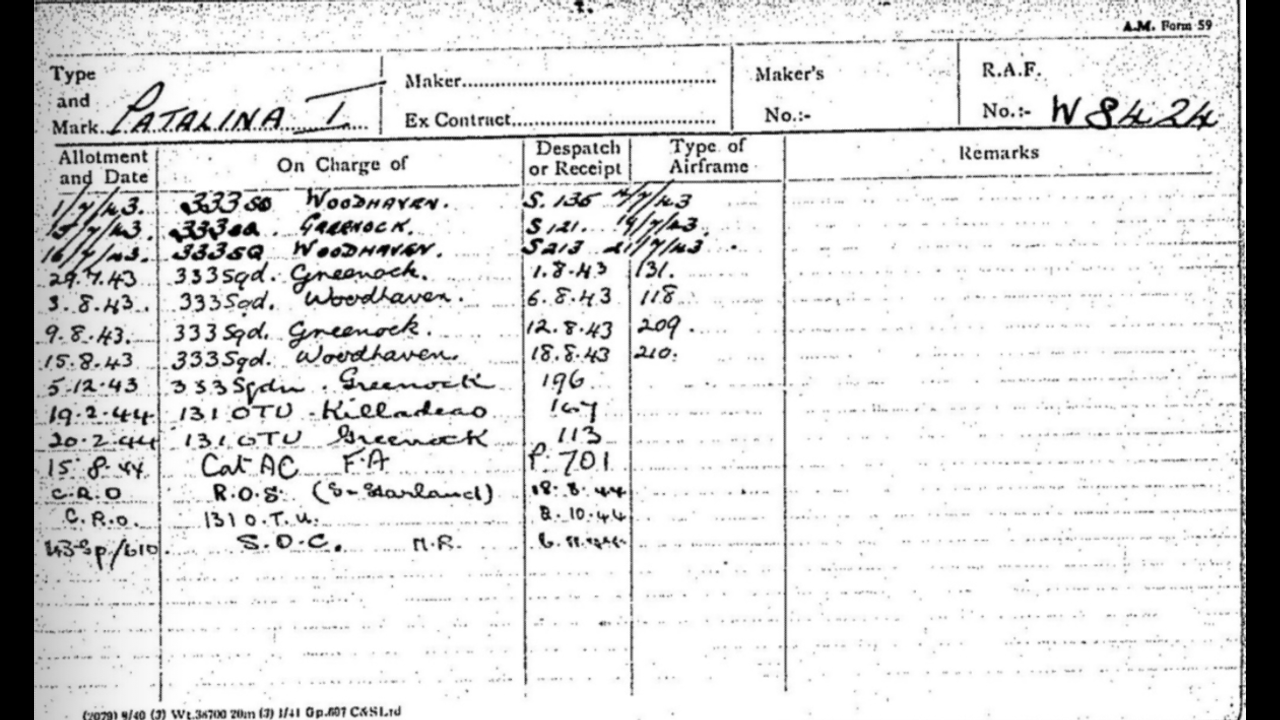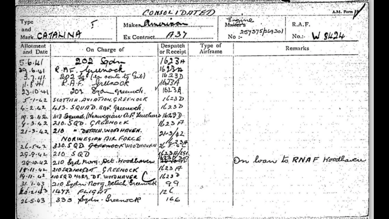 Catalina I PBY-5 28 WS405 W8434 March 41 July 41
