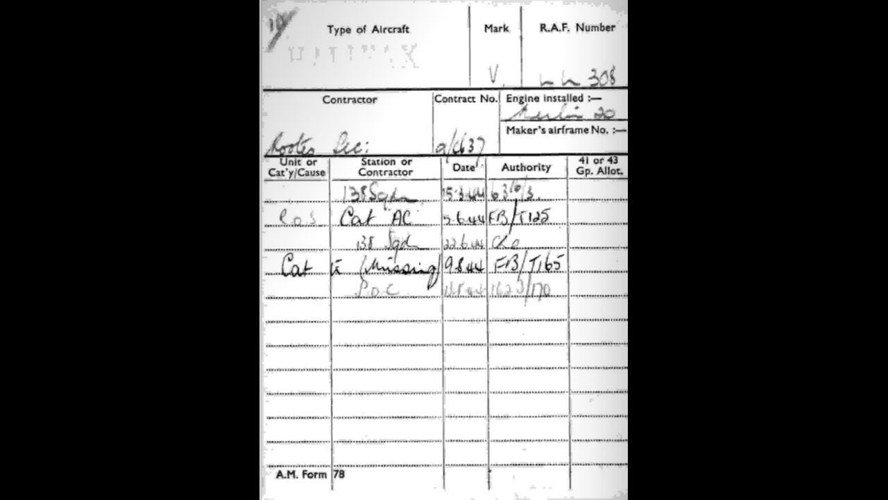 Airborne 2200 8 Aug44 from Tempsford on OPERATION OSRIC 45, setting course for the DZ in Belgium. Shot down in France, crashing between Geraudot (Aube) and Lusigny-sur-Barse, where those killed are buried.