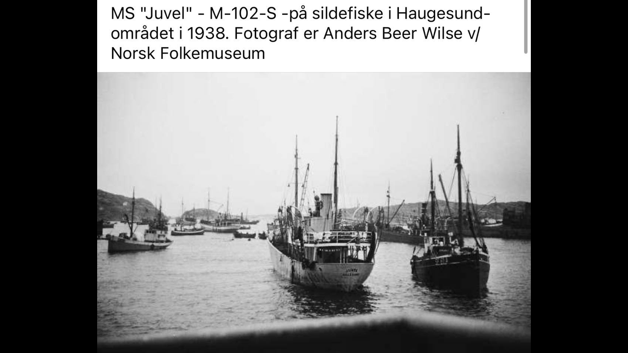 MKr Juvel M-102-S , Stålbåt -B 1936 102,3' - 18,8' - 10,5' - 200 hk dieselmotor Eier: Rasm. Ervik M.fl. Bringsinghaug