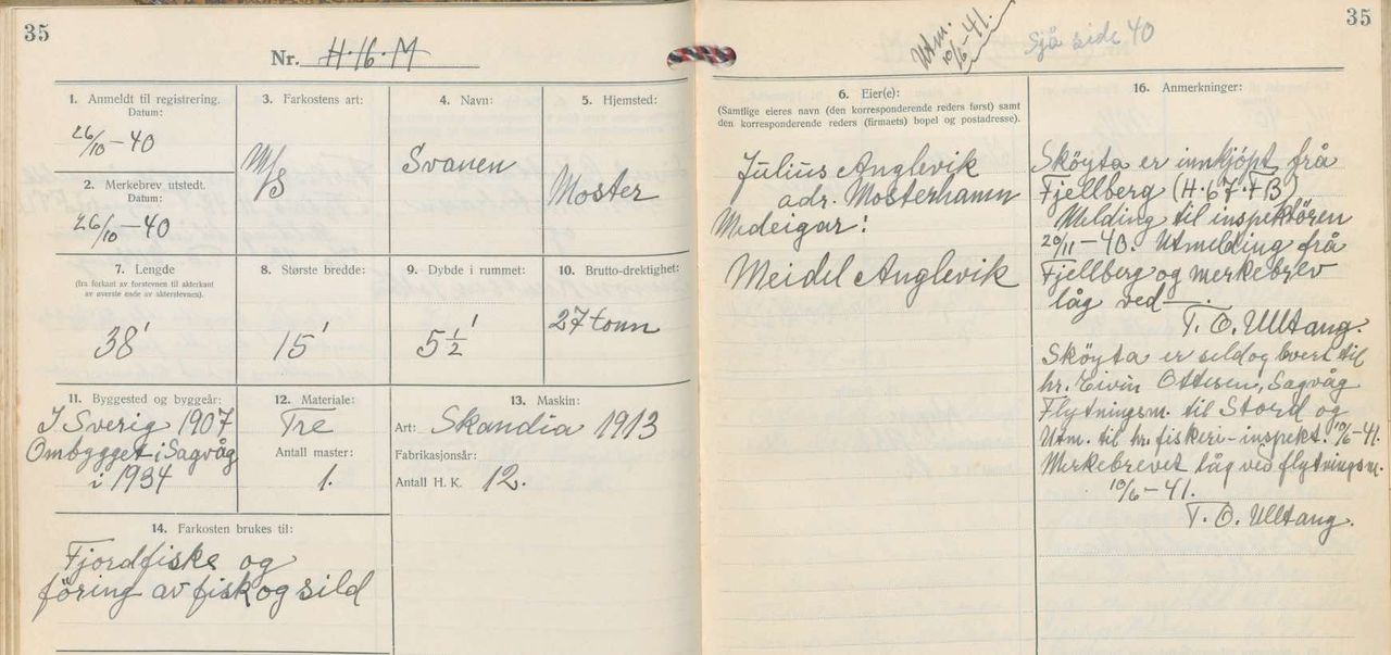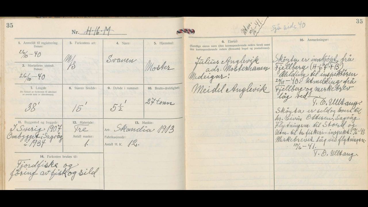MK Svanen H-16-M Bygget i Sverige 1907, omb Sagvåg 1934. Tre - 38'-15-'5,5- 27,5 BT Skandia 1913 12 HK