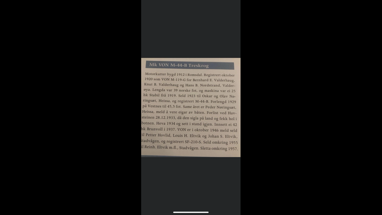 MK VON M-44-B, Kutter bygget i tre 1912, 45,5' - 13,8' - 6,7' - Brunvold 42 HK Peder Nøringseth Heissa pr Ålesund